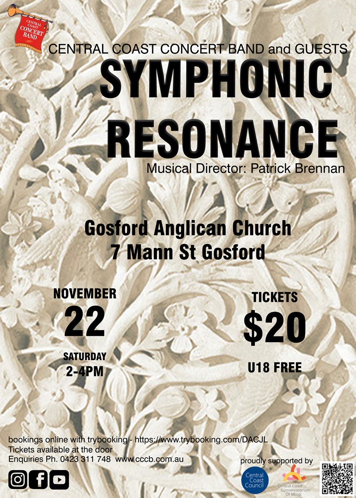 The Central Coast Concert Band are excited to be joined by guests from one of the Conservatorium Central Coast Youth Ensembles, members from the Northern Sydney Symphonic Wind Ensemble and some local musicians for this exploration into the complex sounds that inspire true harmony.